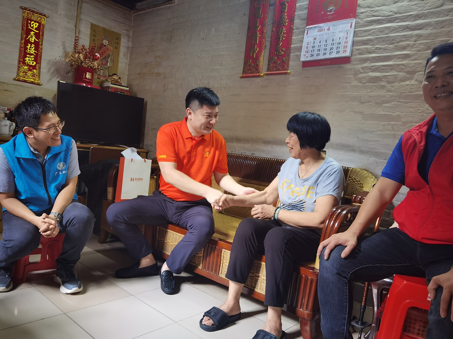6月20日下午,活动统筹人周雁玲、党员苏泽彬、黄旭、周超与沙涌村党支部成员、大龙街社工站成员,一同深入大龙街沙涌村入户探访老党员,向他们致以端午节日的问候并送上生活用品一批。