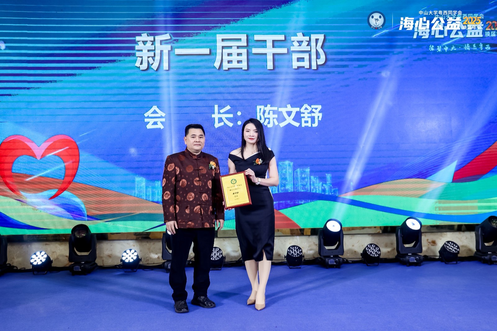 3月22日,广州羊城之夜,中山大学粤西校友会海心公益2025换届主题晚会璀璨启幕,数百名校友、企业家及爱心人士共聚一堂,见证公益薪火传承。欢创集团凭借多年来对公益事业的贡献,荣获“杰出贡献奖”;集团党支部书记、总裁陈文舒女士荣获“爱心大使奖”,并正式当选海心公益新任会长,以崭新身份续写公益事业的责任与担当。